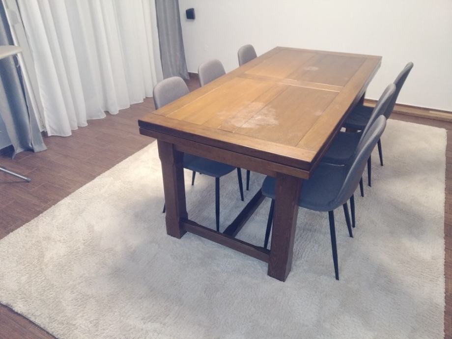 Prodajem stol od punog drveta. Može se i razvući. Kada nije razvučen dimenzije su 100x200 cm, a razvučen je 100x300 cm. Na gornjoj plohi ima nekoliko vidljivih oštećenja od korištenja (tko želi može ju prebrusiti)