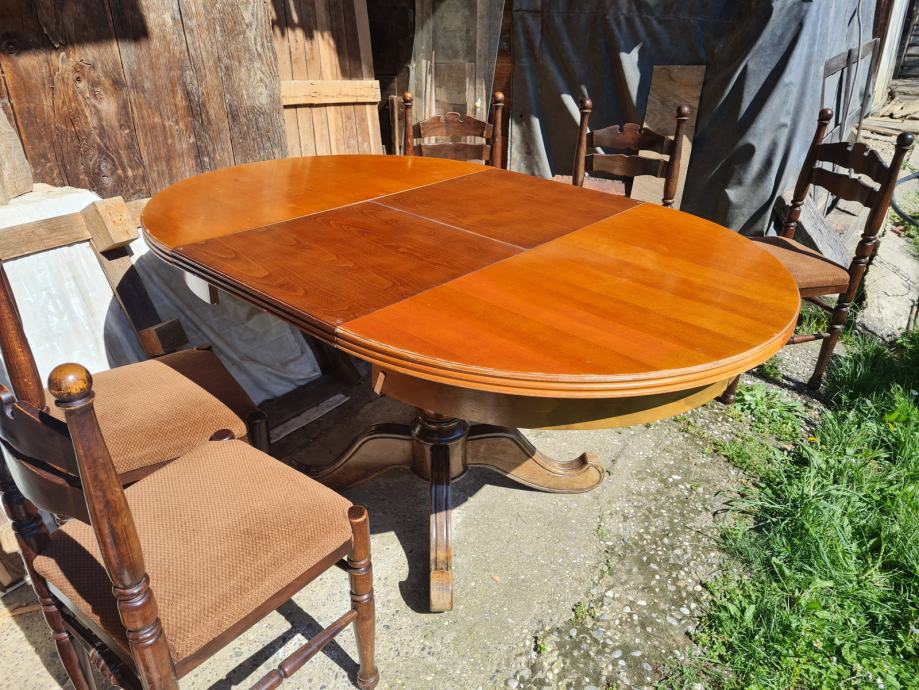 Prodajem stol na razvlačenje sa 6 stolica u dobrom stanju, dimenzija stola: 105 x 105, razvučen: 105 x 155.