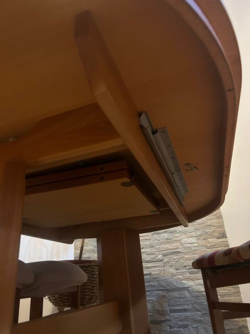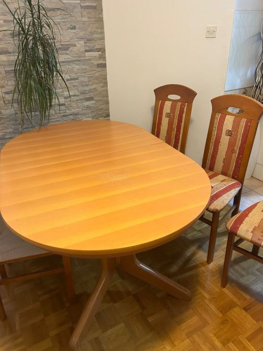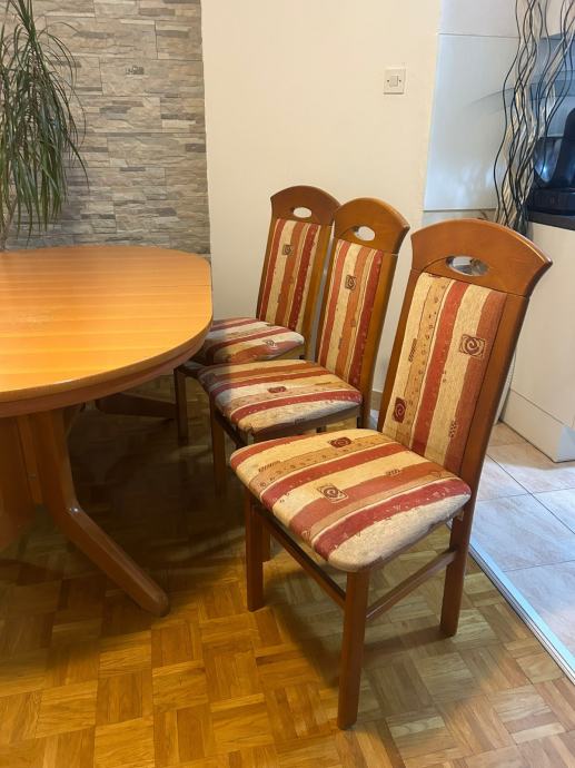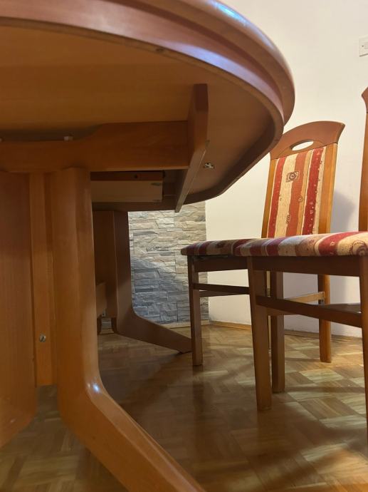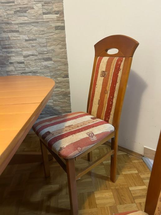 Rabljeni stol ,očuvan,drveni ovalni i 6 tepiciranih stolica koristene.
