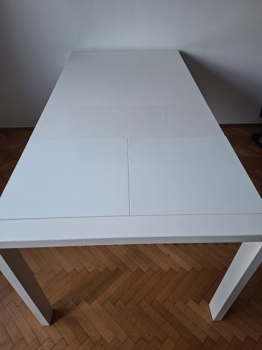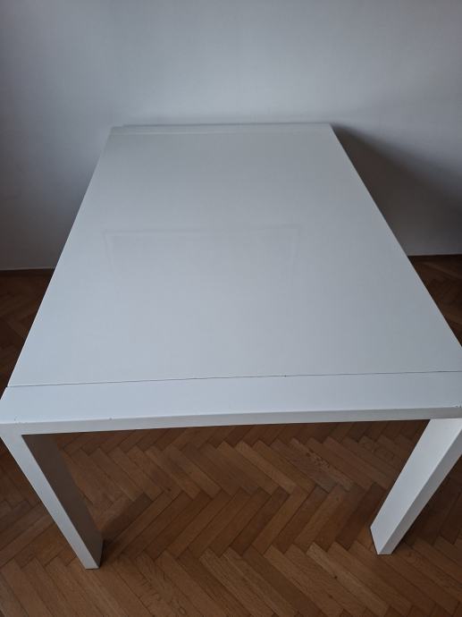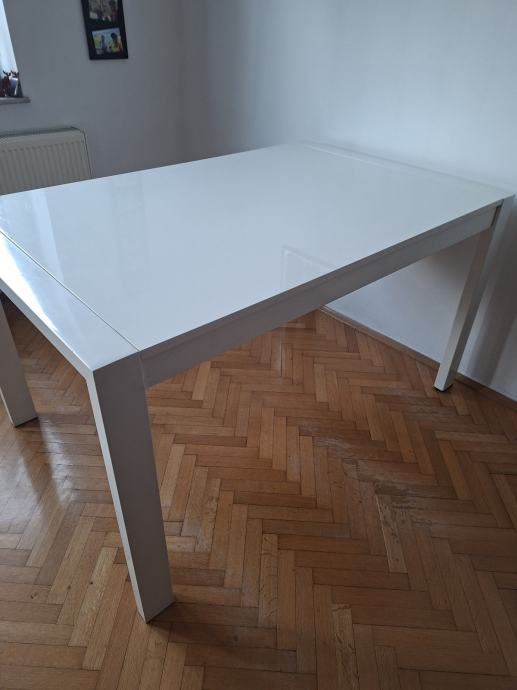 Prodajem bijeli metalni stol dimenzija 140×90×76. Može se produljiti sa svake strane dodatnih 45 cm pa je maksimalna duljina 230 cm.
