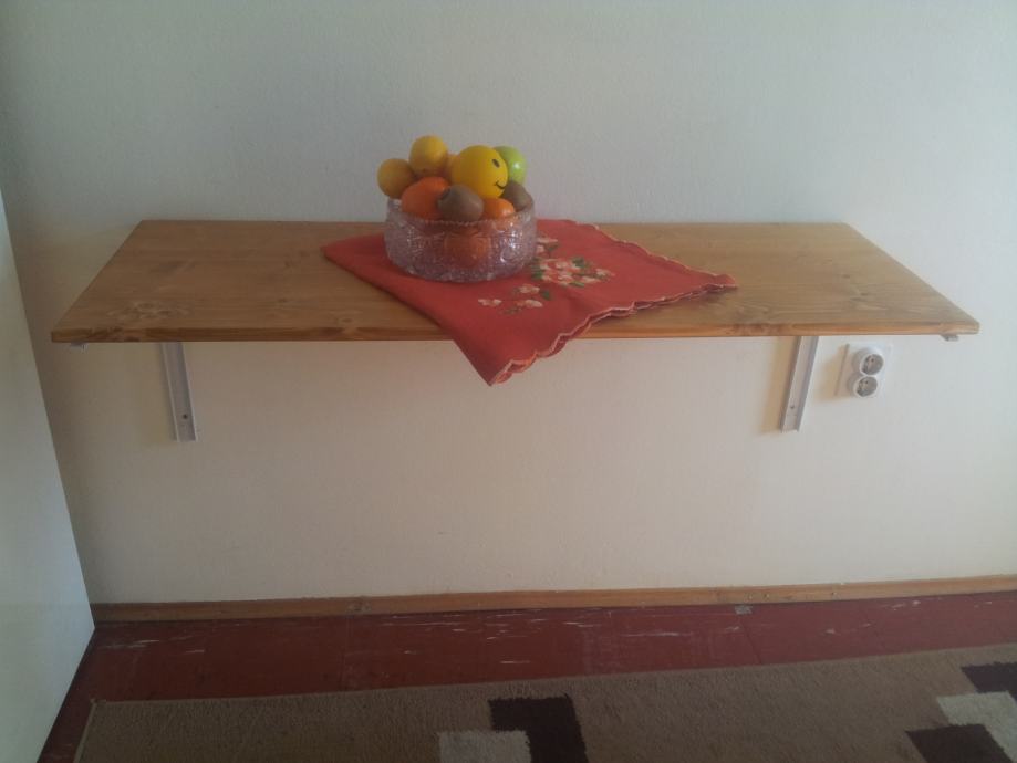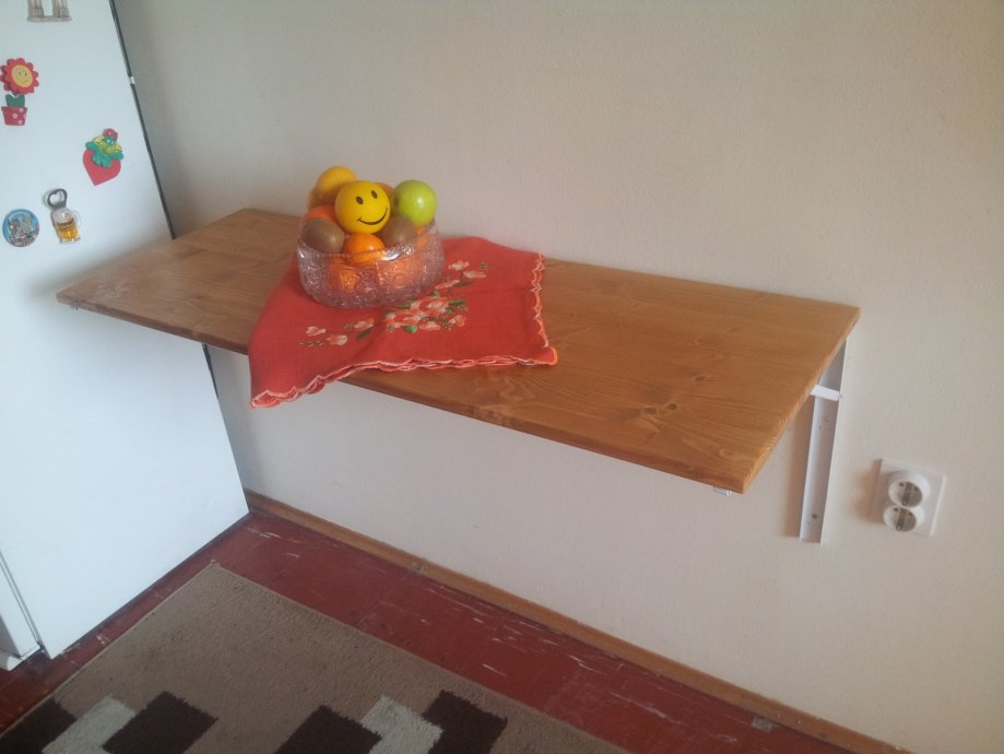 Ploča stola dimenzija 110 x 40 cm izrađena je od jelovine, tonirana u hrastu i lakirana aqua bezbojnim lakom te je stoga otporna na kišu, snijeg i sunce. Zbog toga, stol je posebno prikladan za korištenje na balkonu, a zbog vrlo brzog i jednostavnog sklapanja nema problema s prostorom.