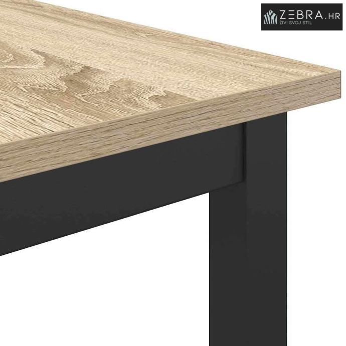 Premium materijali: Površina stola od konstruiranog drva daje glatku teksturu koja dodaje sofisticiranost. Čvrsti čelični okvir i noge osiguravaju pouzdanu potporu u funkcionalne i estetske svrhe.