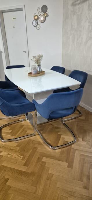 Prodajem u paketu stol i stolica, starih godinu i pol, kipljeno u lesnini za 970€. Razlog prodaje je citiram ne pase uz novi dnevni, nema ostecenja. Za ozbiljne kupce moguca korekcija cijene