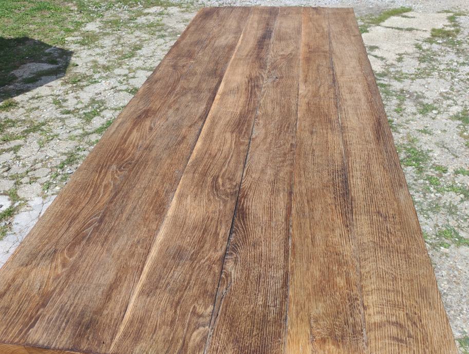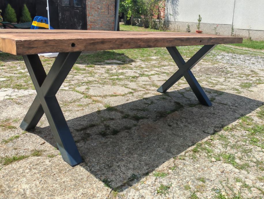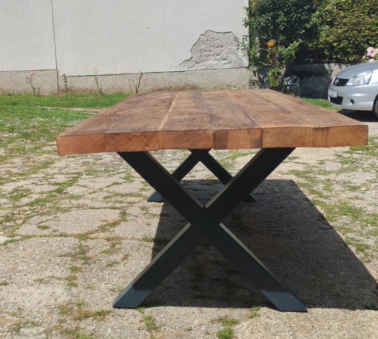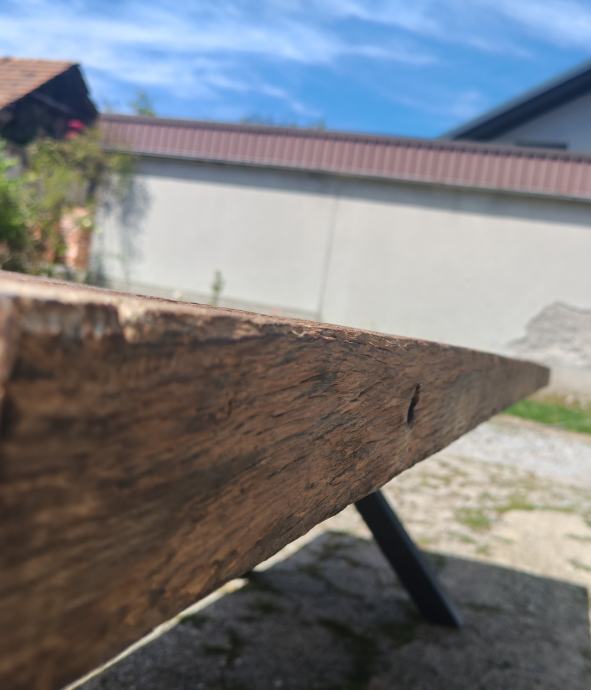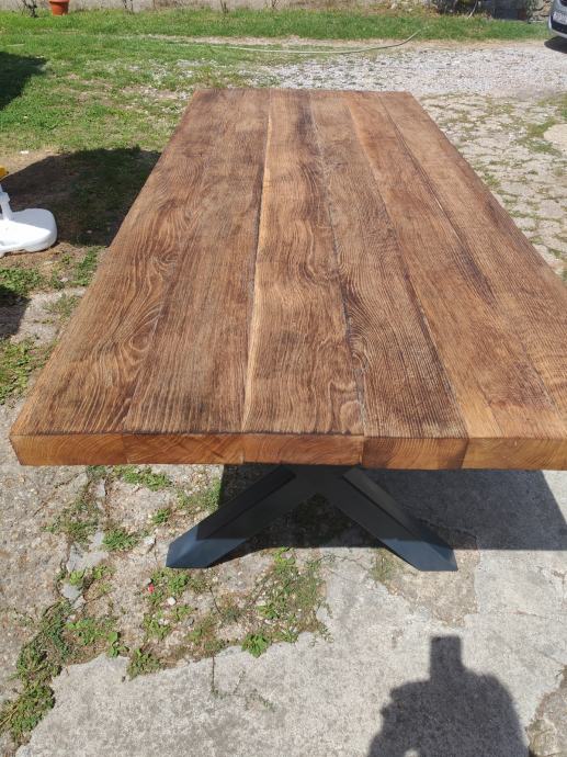 Hrastov stol od starih hrastovih planjaka, dimenzije 220x100cm , debljina ploče 6cm. Plastificirane noge.