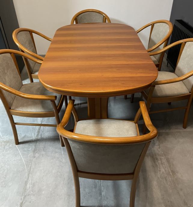Prodajem stol i stolice za blagovaonicu! Širina. 95cm, dužina 155 cm, dodatni umetak za proširenje stola 50 cm, 2 umetka za proširenje, 6 stolica.