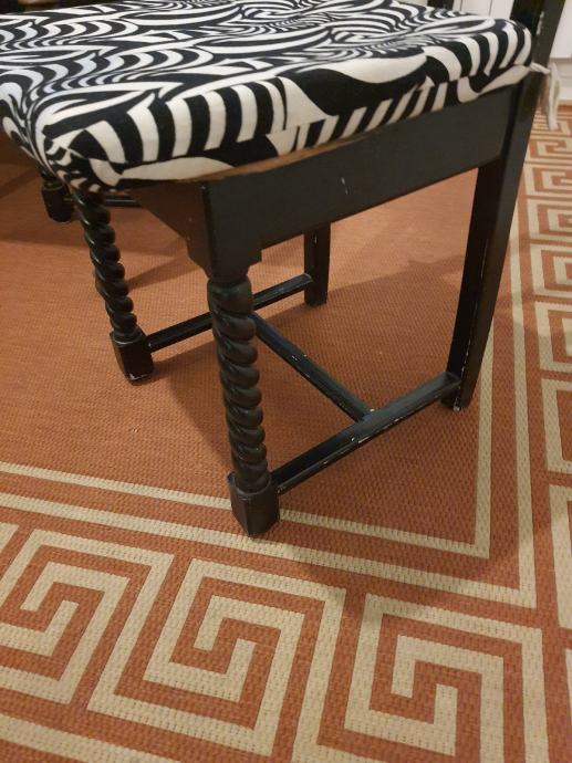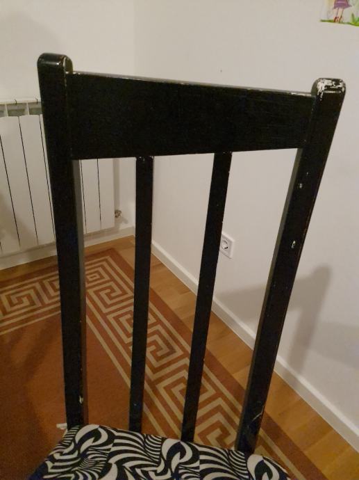Stolice su dimenzija 40x40x111cm, bojane u temeljnu bijelu boju, te lakirane u crno.