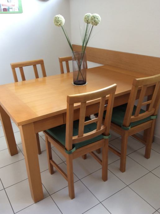 Prodajem stol od punog drveta (bukva) dimenzija 90*150, uz njega ide i 6 stolica. 2 ladice, dimenzija 140x90