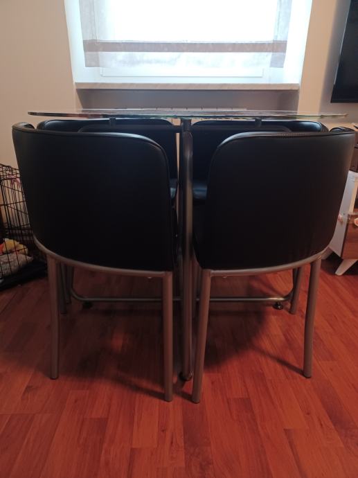 Stakleni stol 90x90 cm i 4 stolice, malo koristeno, prodajem