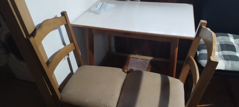 Stol 90x60, gornja ploća od ultrapasa, s 2 pripadajuće stolice, sve puno drvo