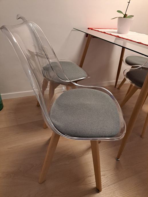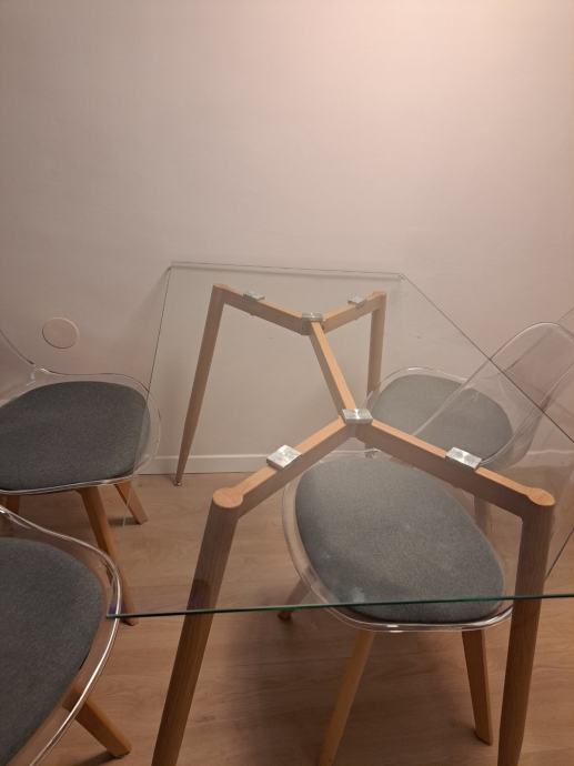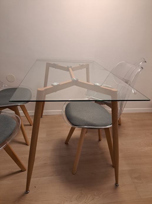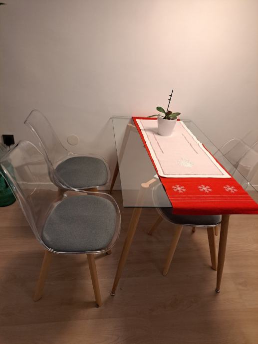 Prodajem stakleni stol i 4 pripadajuće stolice. Korišteno minimalno i bez ikakvih oštećenja. Prodajem jer nam treba veći stol. Stol je dužine 120 cm, širok 68 cm i visine 75 cm.
