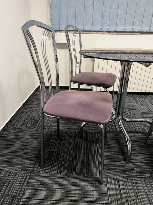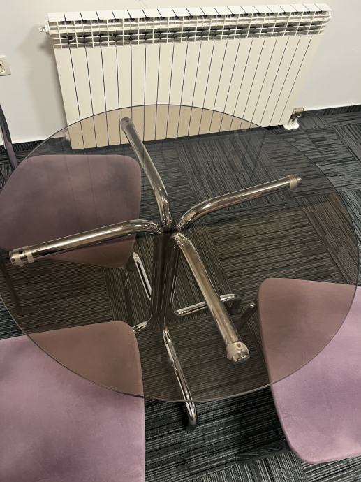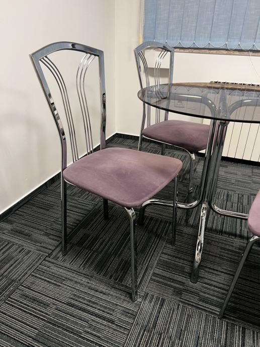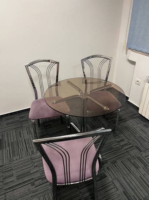 Prodajem stol sa staklenom pločom i 4 tapecirane stolice (na slici samo 3) ali prodajem 4. Čvrsto, stabilno i očuvano. Idealno za kuhinju, blagovaonicu ili apartman.