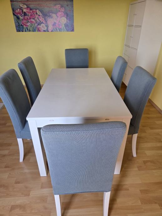 Šest stolica sa bijelim nogicama,navlake s mogučnošću skidanja.Kupljeno u Ikea prije nekoliko godina. U vrlo dobrom stanju. Spužvu ispod navlaka svakako treba zamjeniti.