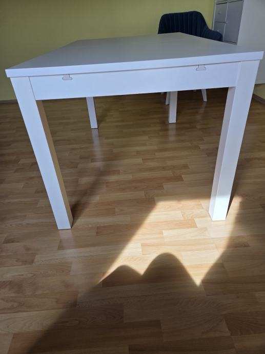 Bijeli stol (mogučnost razvlačenja),dimenzije 80×145×220.