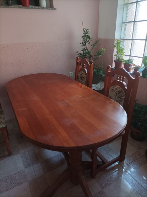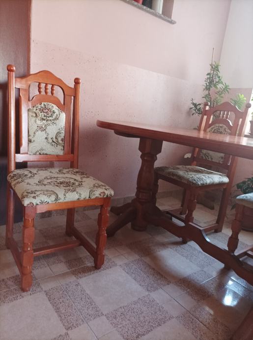 Prodajem stol i stolice, 6 komada, ručni rad, sve je od punog drveta, divlja trešnja, u odličnom je stanju.