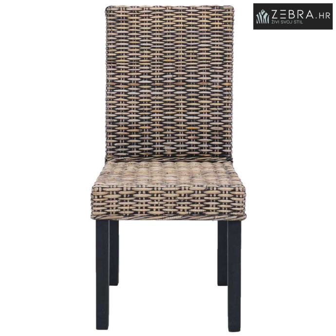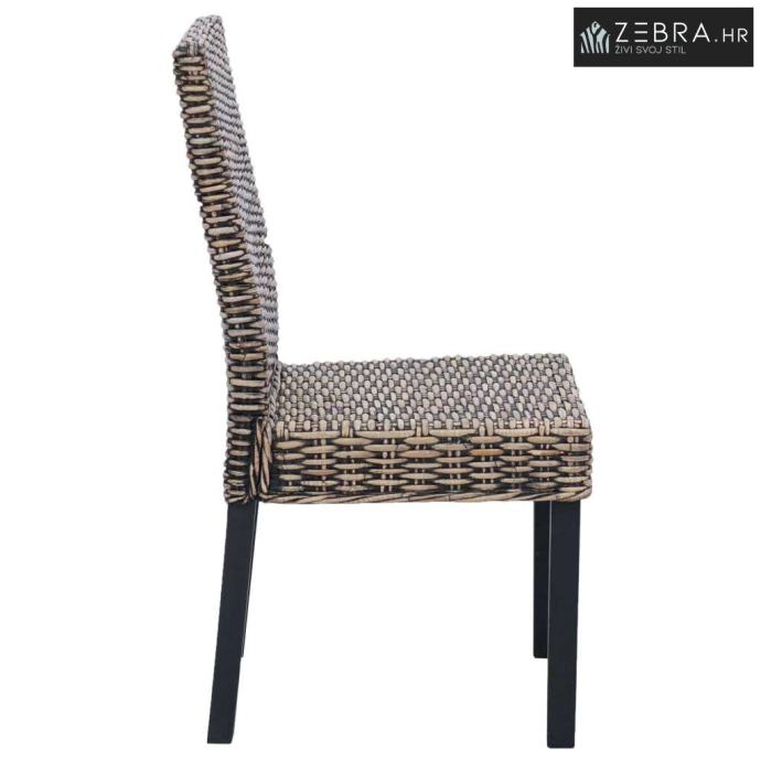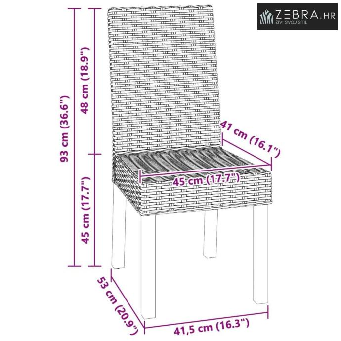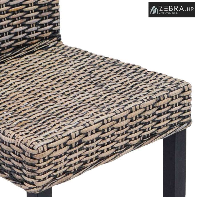 Izvrsnost materijala Stolice su napravljene od prirodnog ratana s jedinstvenim ručno tkanim dizajnom, što ih čini vizualno privlačnim i izdržljivim. Ratan daje udobno, ali čvrsto sjedenje, pružajući odličnu udobnost. Čvrsti mahagonijevi okviri daju trajnu potporu uz prirodnu završnu obradu koja je moderna i sofisticirana. Ovi materijali su birani zbog kvalitete i izgleda te su dugotrajno rješenje za sjedenje, dodajući vrijednost svaki prostoriji. Obrada stražnjeg dijela Stolice imaju lijep i dovršen stražnji dio, izgledajući sjajno iz svih kuteva. To ih čini idealnima za otvorene kuhinje ili blagovaonice. Promišljen dizajn leđa podržava elegantan izgled i poboljšava iskustvo sjedenja, pružajući stil i udobnost. Pažnja na detalje osigurava dobru potporu i privlačnost. Funkcionalne značajke dizajna Svaka stolica ima potporni naslon uz ugrađeno podnožje, nudeći udobnost za objedovanje ili duže opuštanje. Ojačano sjedalo povećava trajnost, prilagodavajući se često korištenju bez gubitka udobnosti ili izgleda. Kombinacija funkcionalnih i stilskih značajki predstavlja idealno rješenje za sjedenje, dodajući vrijednost svakodnevnoj upotrebi. Svestrano postavljanje u prostorijama Savršene su za kuhinje i dnevne boravke, dodajući karakter i sofisticiranost. Bogate smeđe nijanse se lako uklapaju u razne stilove - od modernih do klasičnih. Njihov svestrani dizajn dobro funkcionira u opuštenim i formalnim okruženjima, prilagođavajući se različitim stilovima s lakoćom. Upute za održavanje Da biste ih sačuvali, redovno brišite stolice mekom, suhom krpom. Izbjegavajte jako kemijsko sredstvo koja bi mogla oštetiti ratan ili drvo. Povremeno provjeravajte stabilnost spojeva za dugotrajnu upotrebu. Pravilna njega osigurava da ove stolice zadrže svoju prirodnu ljepotu i funkcionalnost dugi niz godina. Boja: Crno pranje