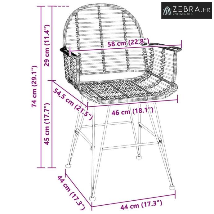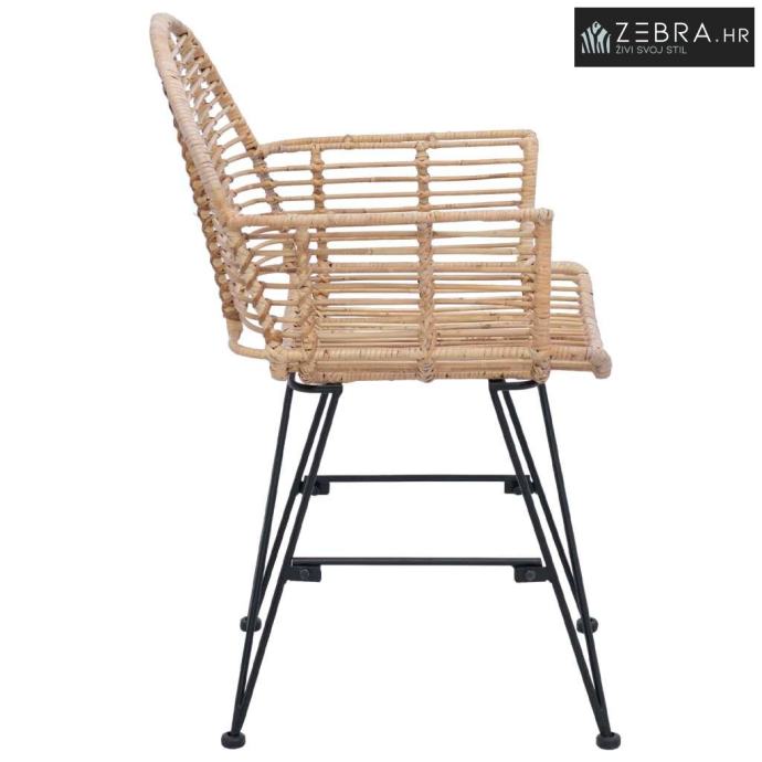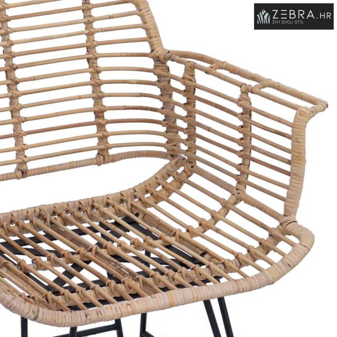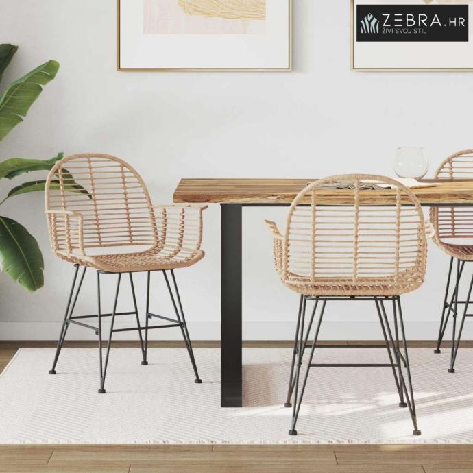 Materijali od ratana i željeza: Izrađena iz sjajnog ratana i čvrstog željeza, ova blagovačka stolica osigurava dugotrajan i izdržljiv komad. Ručno tkanje ratana dodaje organske šarme i taktilni element, a čelični okvir daje dodatnu snagu. Ovi materijali su odabrani zbog svoje čvrstoće i vizualne privlačnosti, pa stolica izdržava svakodnevnu upotrebu i ostaje istaknuti komad u tvojem domu. Oblikovanje svih komponenti: Spoj je elegancije i funkcionalnosti, s ratan naslonom, zakrivljenim naslonima za ruke i udobnim ugrađenim odmorištem za noge. Sve komponente su tu da povećaju udobnost, a ratan naslon pruža opuštajuće iskustvo. Crne čelične noge daju moderan kontrast i stabilnost, čineći je savršenom za različite tipove tijela i idealnom za bilo koju kuhinju ili dnevni boravak. Stilizirane karakteristike i dizajn: Ova stolica s leđima i udobnim odmorištem besprijekorno se uklapa s ručno tkanim izgledom. Promišljen dizajn balansira funkcionalnost i estetiku, pa poboljšava opuštene i formalne blagovaonice. Njen minimalistički profil i čiste linije savršene su za one koji vole suptilnost u svojim interijerima. Preporučena svestranost: Odlična je za dnevne boravke i kuhinje. Kompaktni dizajn se uklapa u različite prostore bez preopterećenja postojećeg namještaja. Super je za zimske okupljanja ili proljetne doručke, a njen prilagodljivi stil nudi udobno sjedalo bilo za zabavu ili svakodnevnu upotrebu. Smjernice za njegu i održavanje: Održavanje tvoje blagovačke stolice je lako. Samo ju obriši suhom, mekom krpom da ukloniš prašinu i zadržiš svježi izgled. Izbjegavaj koristiti oštra sredstva za čišćenje ili izlaganje prekomjernoj vlazi, i izgledat će odlično godinama. Boja: Prirodna