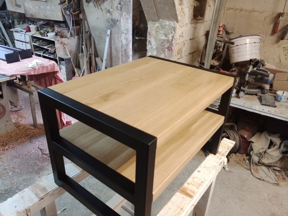 Prodajem masivni stolic sa metalnim nogama za dnevni boravak.