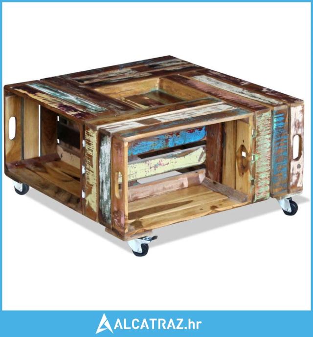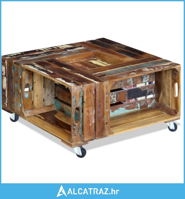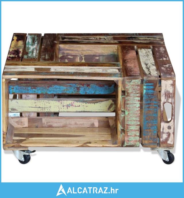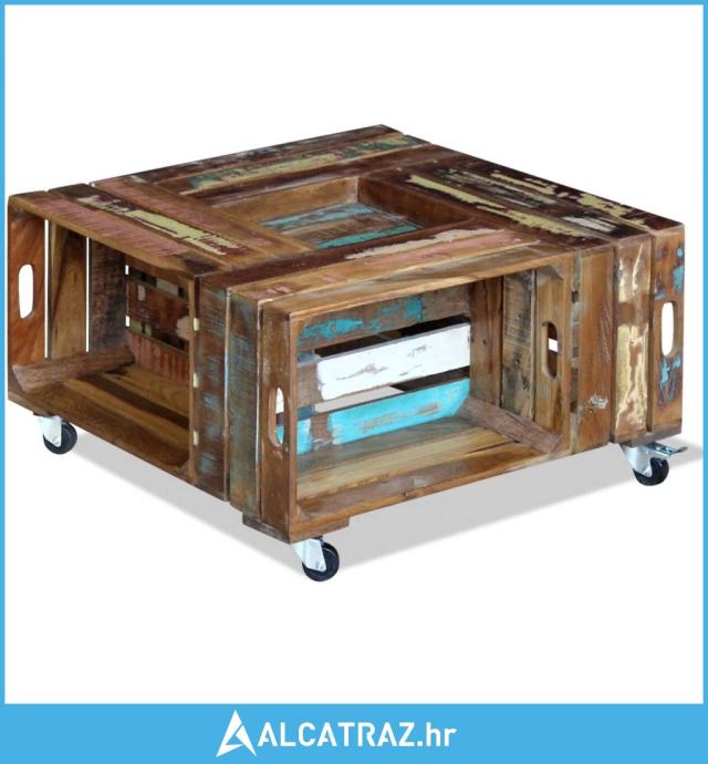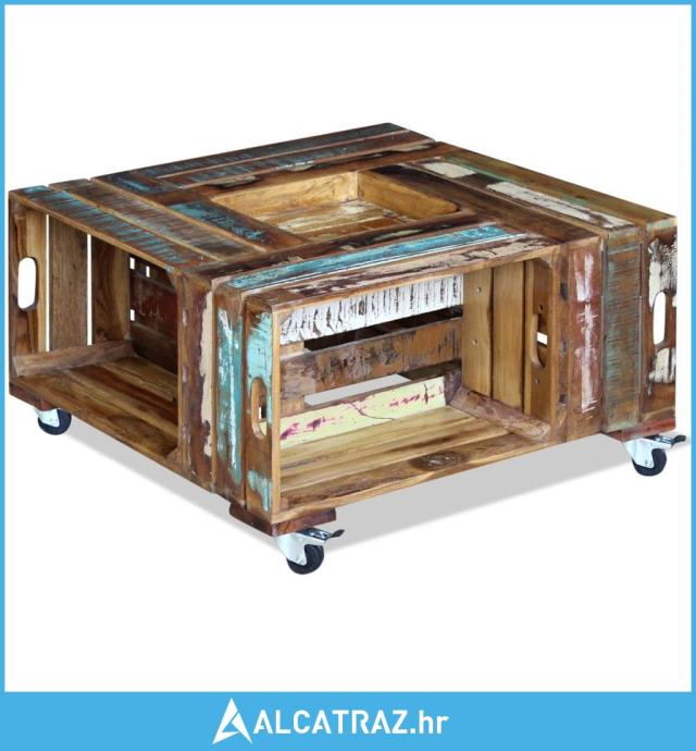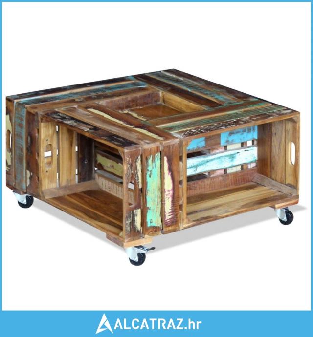 Ovaj stol za kavu u rustikalnom stilu, izrađen od čvrstog obnovljenog drveta, bit će bezvremenski dodatak vašem domu. Može se koristiti i kao stol uz kauč, stol u dnevnom boravku, bočni stolić, itd. Čvrsta drvena ploča stvara stabilnu i sigurnu površinu na kojoj možete postaviti pića, košaru sa voćem ,vazu ili druge ukrasne predmete, zahvaljujući 4 kotača, može se fleksibilno postaviti i lako se pomicati.