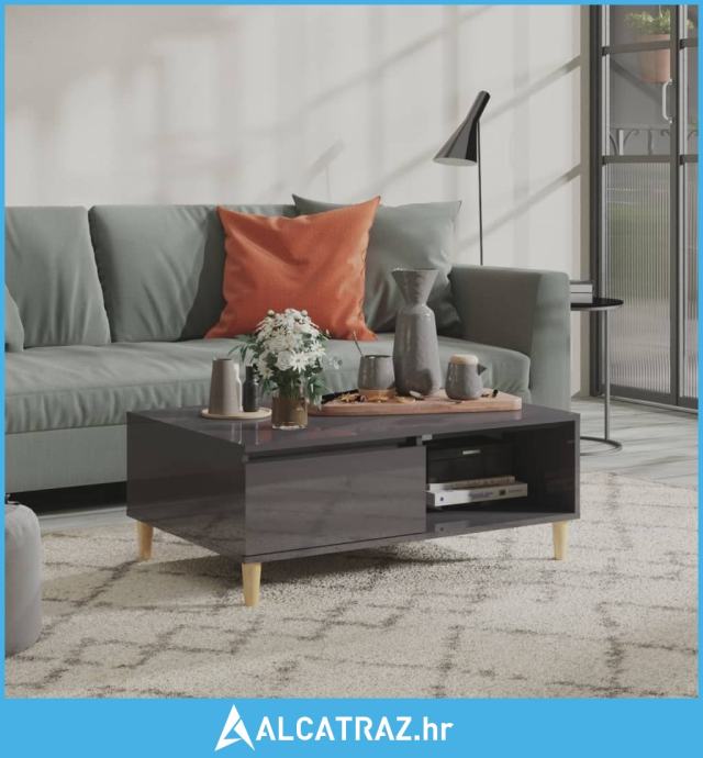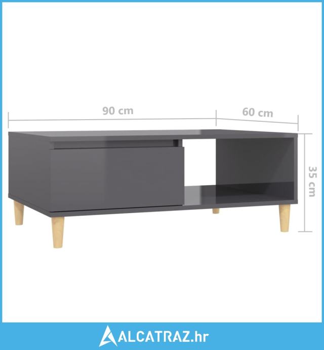 Stolić za kavu visoki sjaj sivi 90 x 60 x 35 cm od iverice - NOVO