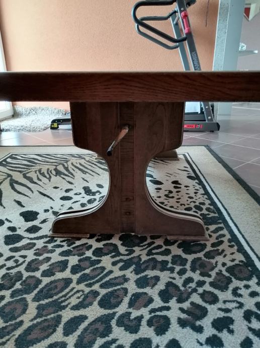 Stolić od masovnog drveta vel 150x75x53, sa mogućnosti podešenja visine do 65 cm. Nema oštećenja od udarca, niti ogrebotina. Potrebnoga prelakirati tko želi.