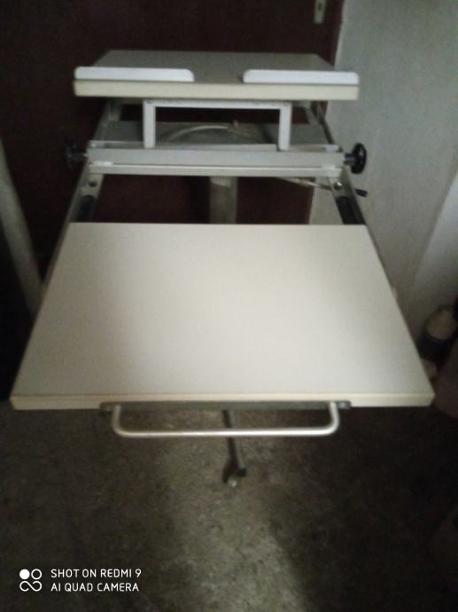 Prodajem višenamjenski stolić. Višenamjenski zato jer se može podizatu,spuštati, okreteti i td. Donja ploća se pomiće a gornju ploću može se namještati nagib. Stolić ima je na 5 kotaća. Na poruke ne odgovaram.