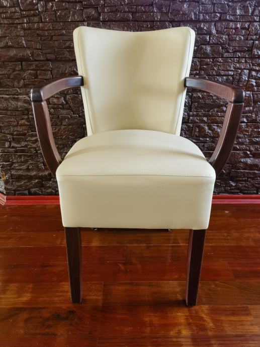 Stolica koju možete koristiti u kučanstvu ili ugostiteljstvu, odlične kvalitete, visoka udobnost, drvo bukva, tapicirano umjetnom kožom.