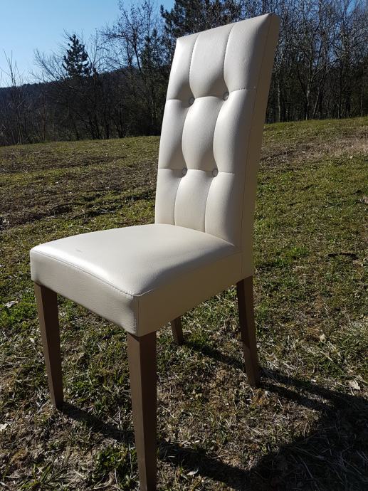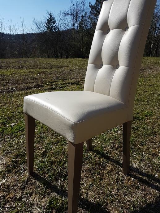 Prodajem drvenu tapeciranu stolicu u eko kožu bež boje ..nova...samo jedan komad .Talijanski dizajn