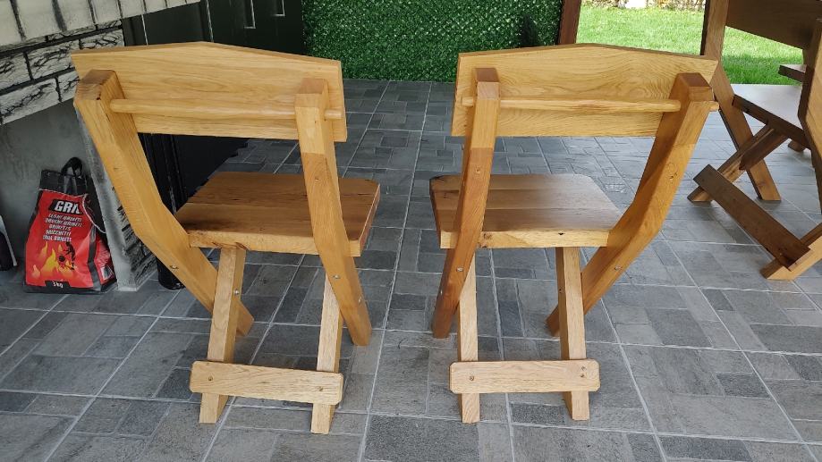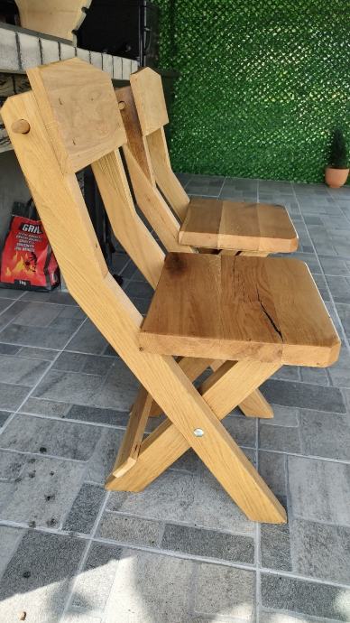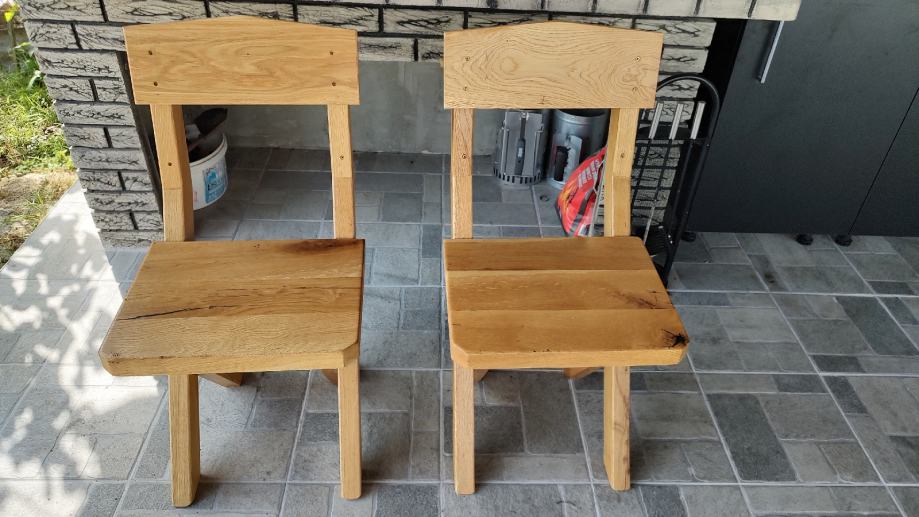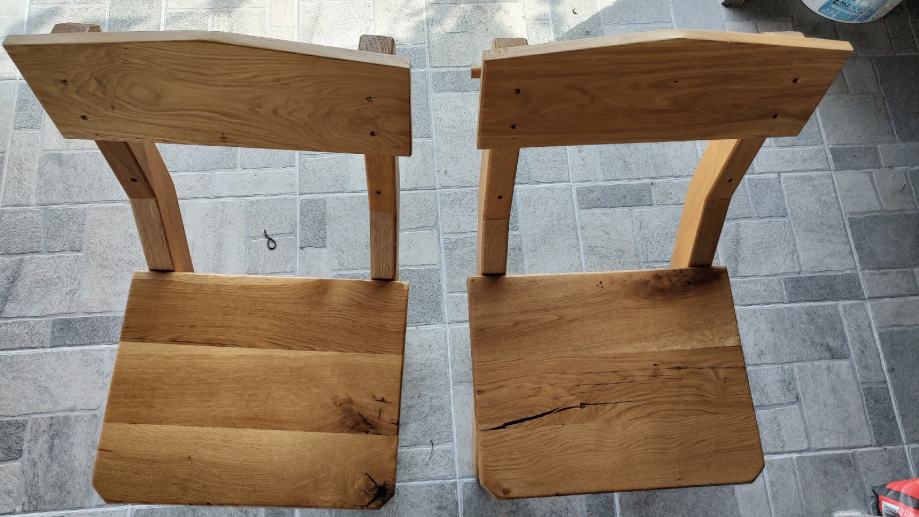 Prodajem dvije stolice, ručna izrada, stari masivni hrast, lakirano, za vanjsku uporabu, pod vrtnom sjenicom, npr.
