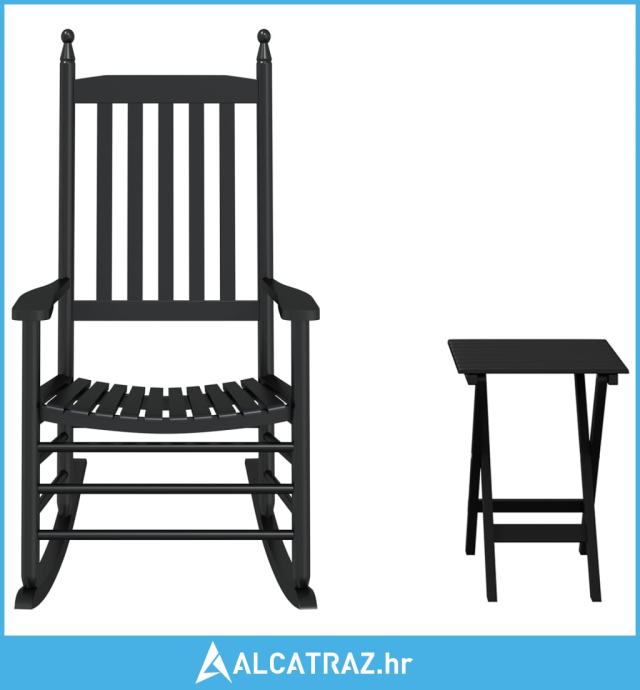 Stolica za ljuljanje sa sklopivim stolićem crna od drva topole - NOVO