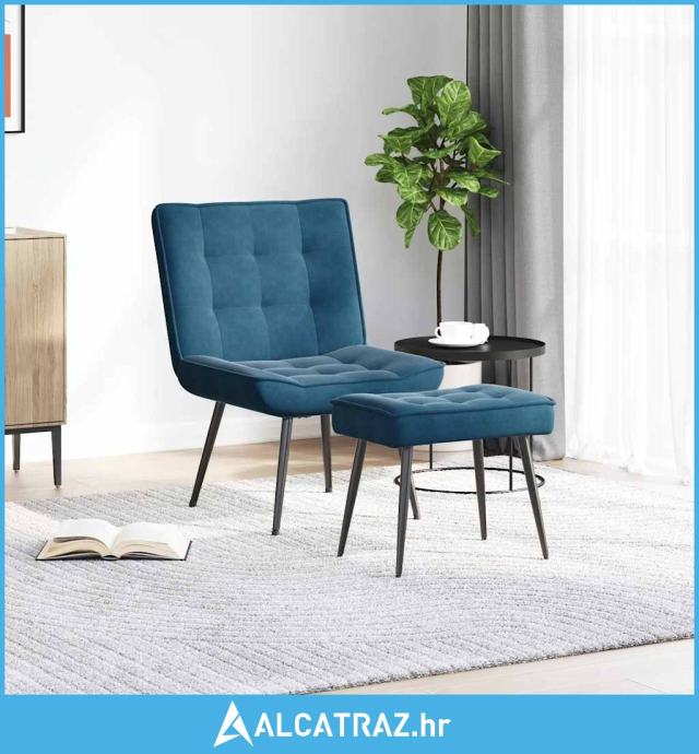 Stolica za opuštanje sa osloncem za noge plava baršunasta - NOVO