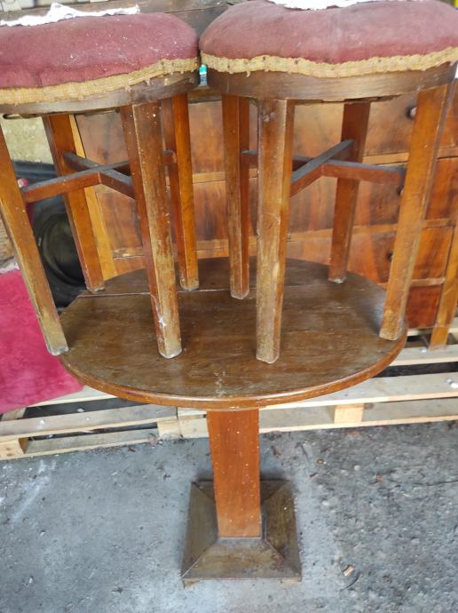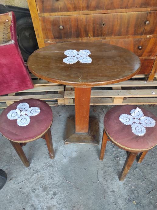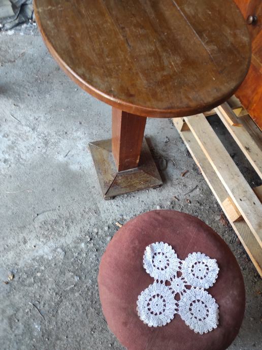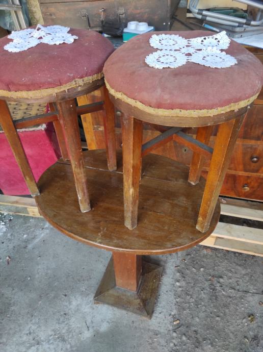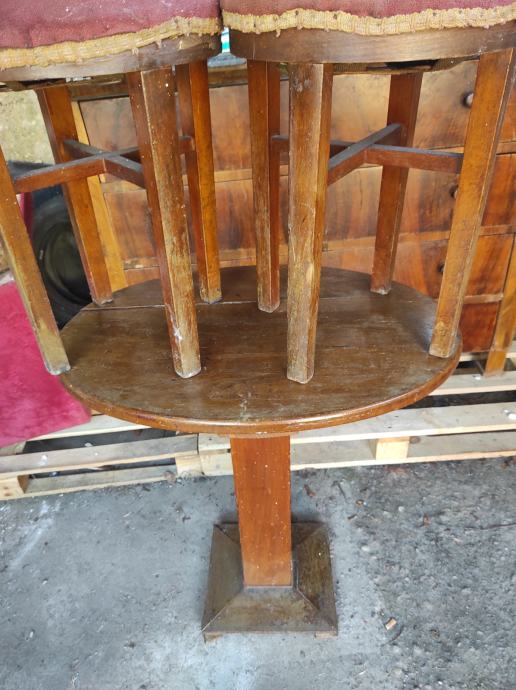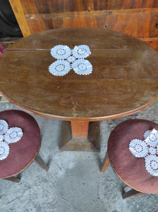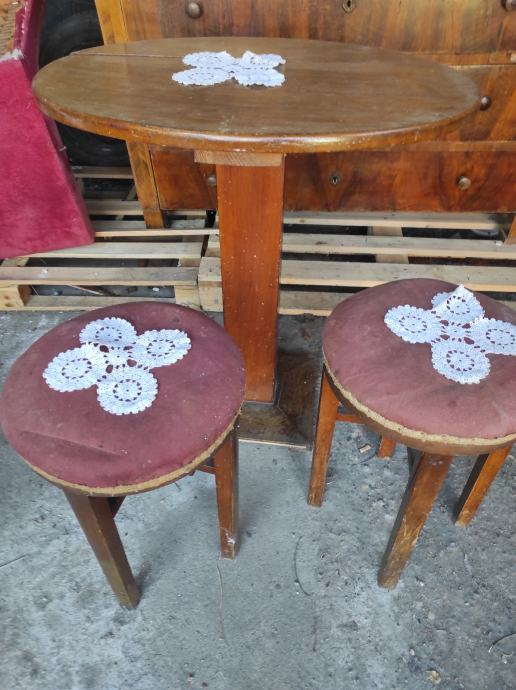 Na prodaju ovalni stol 70×50 sa 80 cm visine jajastog oblika i dvije male stolice visoke 50 cm sa cetiri noge i okruglim sjedištem,( HRASTOVE), idealno za nekakvu terasu, vikendicu,klet ili za kucu.Molim slati poruke na Viber ili NJUSKALO ili nazovite na broj dolje upisan,šaljem bilo gdje u Hrvatskoj Poštom ili Tiskom ili u dogovoru sa kupcem.Volio bih prodati sve u kompletu, Takve stare stvari kada se malo urede su bolje od današnjih novih ,puno su kvalitetnije.Sve bilo od djeda i stoji godinama, ali i dalje u dobrom stanju.Komplet stol i stolice su stari vise od 70 godina, iz 40 tih su godina ,stanje kao na slikama.Samo stol 30 eura,a stolice svaka 15,zajedno za 45 .VIDI SLIKE!!