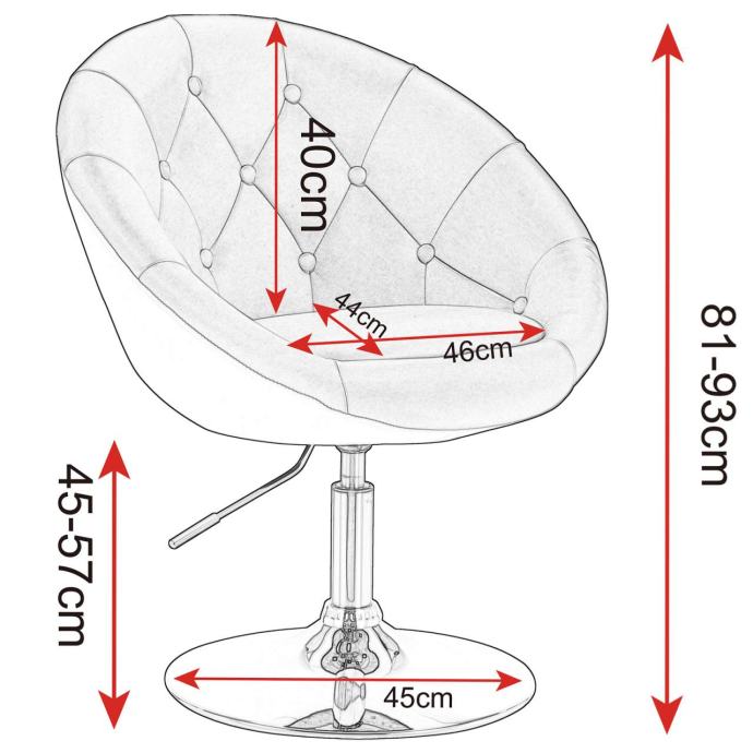 Ergonomski naslon i blago nakošeni nasloni za ruke pružaju bolju potporu tijelu, smanjuju umor i omogućuju ugodno sjedenje kroz dulje vrijeme. Zahvaljujući 360° okretanju i podešavanju visine sjedišta (45–57 cm), stolica se može prilagoditi različitim namjenama: kao blagovaonska stolica, lounge stolica, stolica za šminkanje, kuhinjska stolica, uredska pomoćna stolica ili stolica za recepciju.