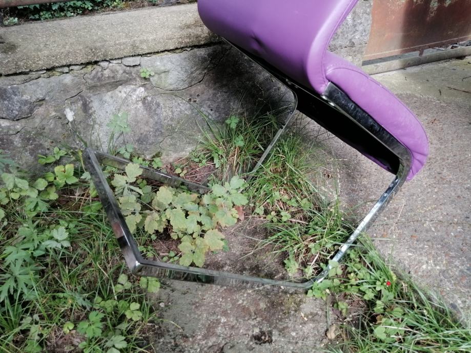 Hitno prodajem ispravne-korištene-uščuvane: 4 stolice (metal-tapecirung ljubičasti skaj) - 2018.g.