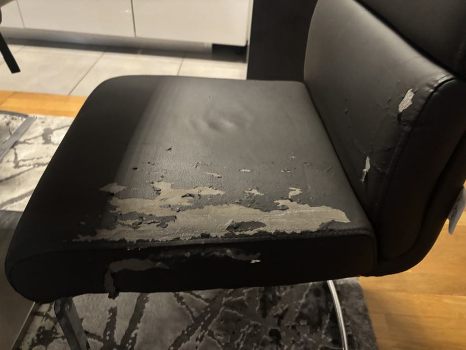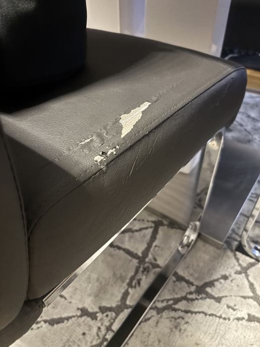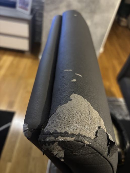Jedino oštećenje je na navlaci od umjetne kože (oguljena/pohabana mjesta), što se lako može zamijeniti ili prekriti presvlakom.