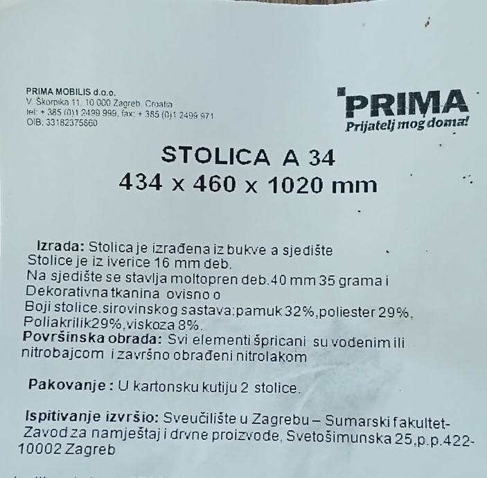 Stolice su izuzetno kvalitetne i masivne, stanje kao prvog dana kada su kupljene, plaćeno 108,00 eura komad i to na akciji.