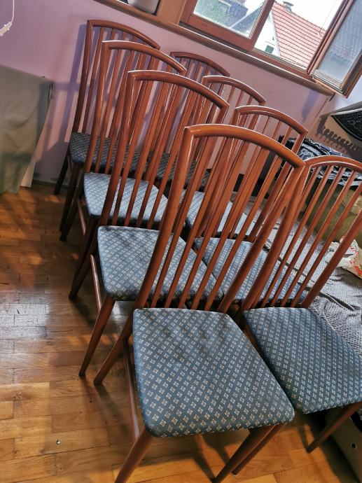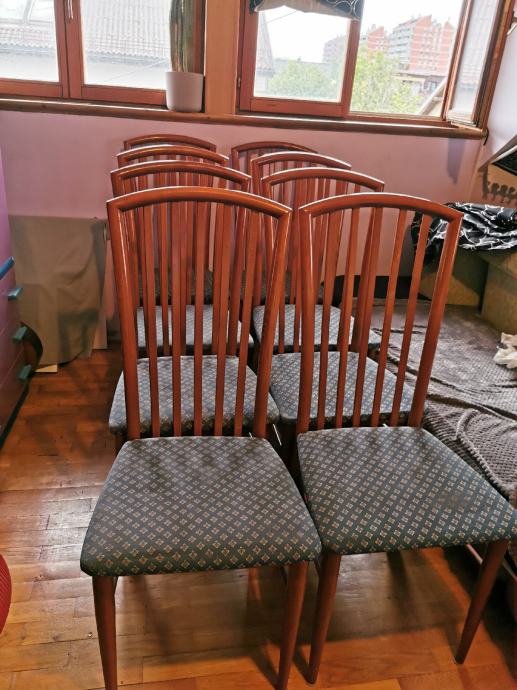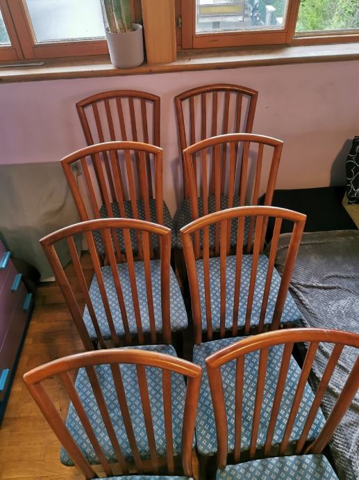 Prodajem 8 rabljenih stolica za blagavaonu, trešnja. Potrebno je malo očistiti tapicirung, osobno preuzimanje komad 20 eura