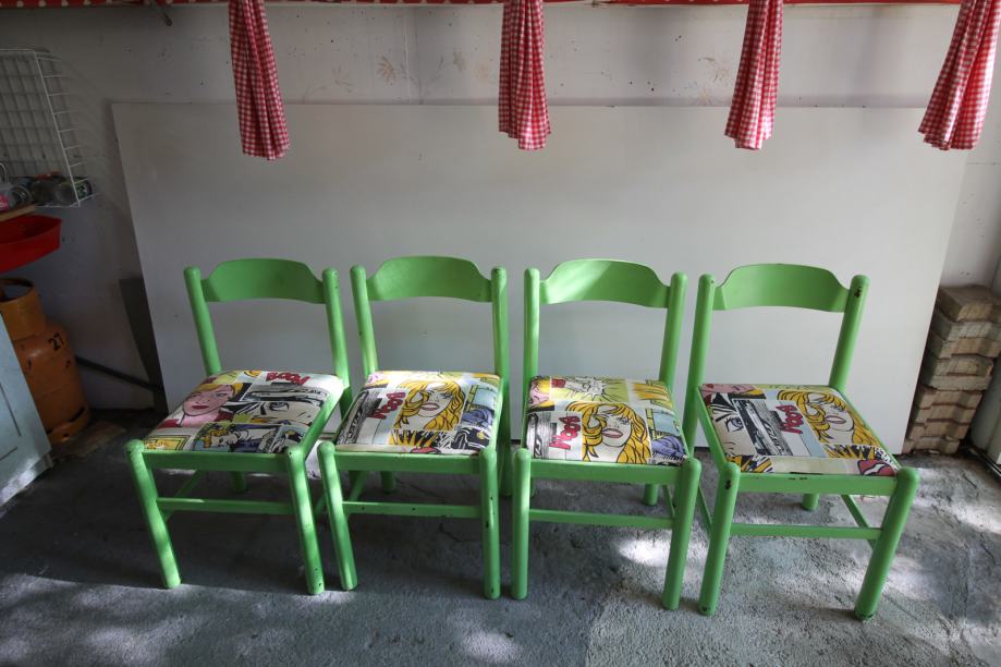 Nudim 4 kuhinjske stolice od kuhane bukovine izuzetno solidne . Mogu podnijeti nemirnu osobu od 160 kg bez problema . Prodajem ih 15 E po komadu . Nudim i kuhinjsku vitrinu slične boje 250 E .