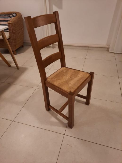 Prodajem 8 (osam) stolica od punog jasenovog drveta sa naslonom i sjedalom od prirodne pletene like. Stolice su malo korištene i u skoro novom stanju. Prodajem samo komplet od 8 (osam) stolica. Stolice mogu biti upotrebljene i kao restoranske. Cijena je izražena za svih 8 komada i ne uključuje prevoz ili dostavu.