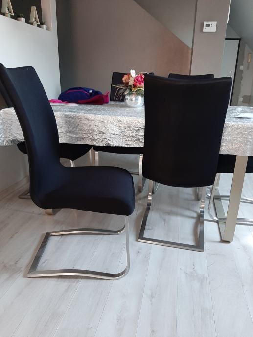 Prodajm stolice od kože i inoxa koža je bijele i malo poguljena pa je na njima crna platnena navlaka