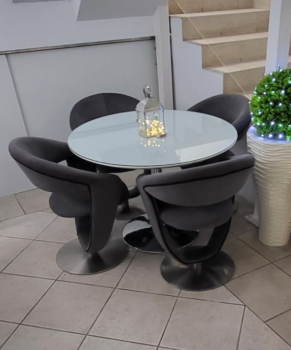 Cijena za 4 stolice plus stol sa staklom iznosi - 200 EUR.