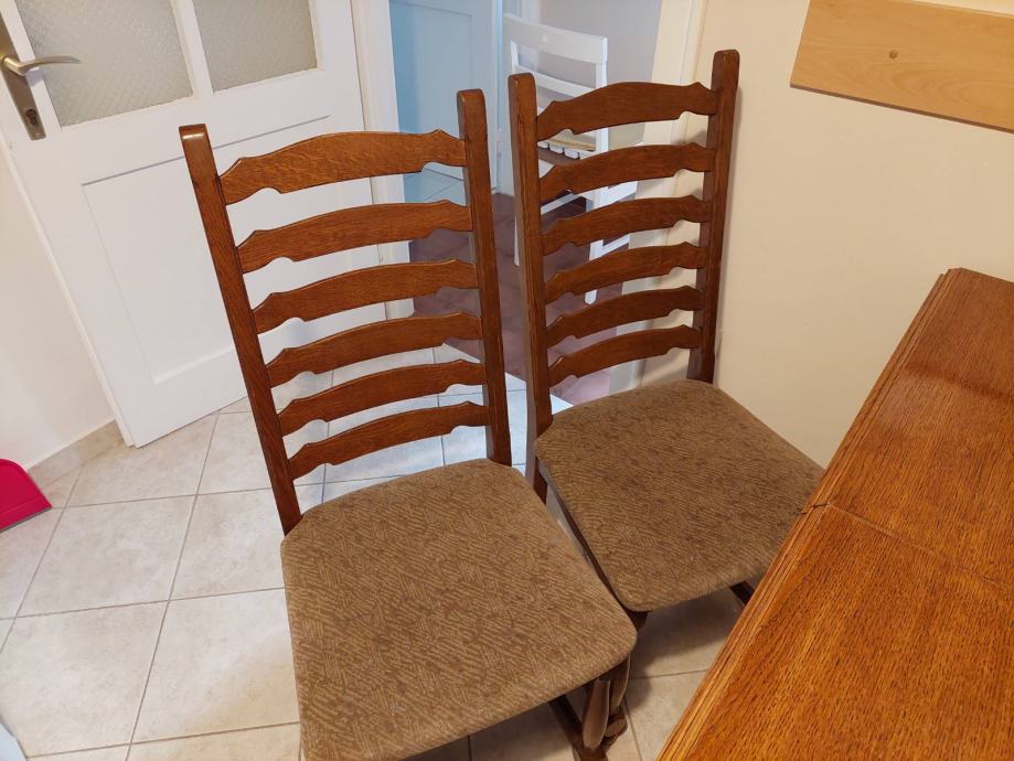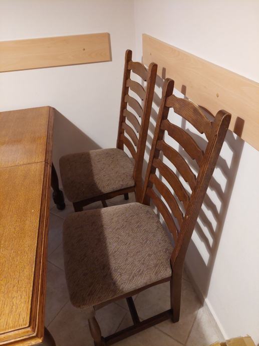 Prodajem 6 stolica od hrastovog drva sa tapeciranim sjedalom.