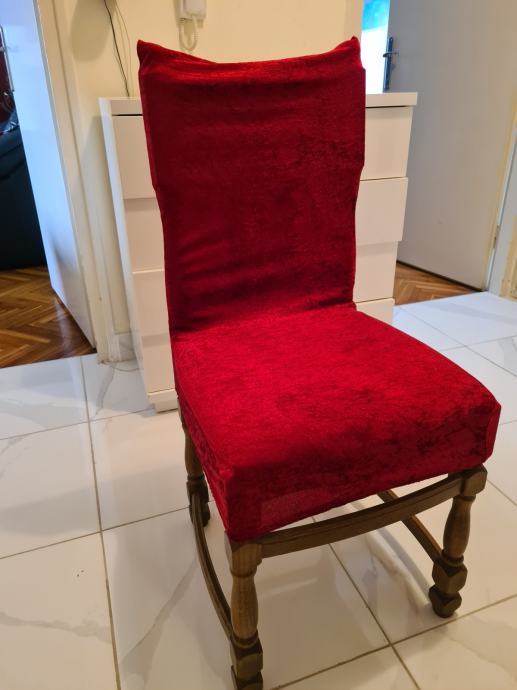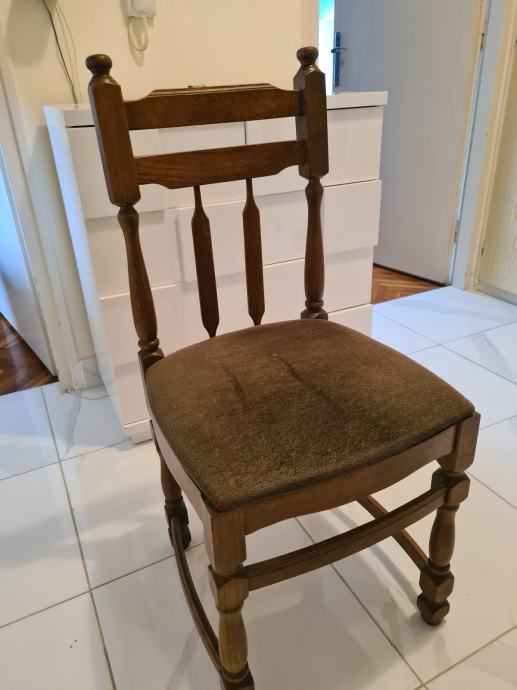 Prodajem 6 drvenih blagovaonskih stolica. S ili bez navlake. 5 eura po stolici (30eur ukupno)