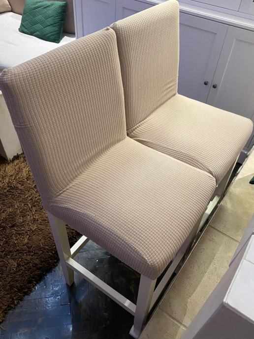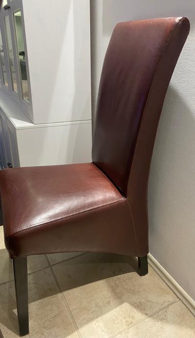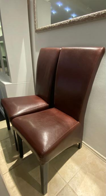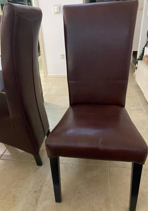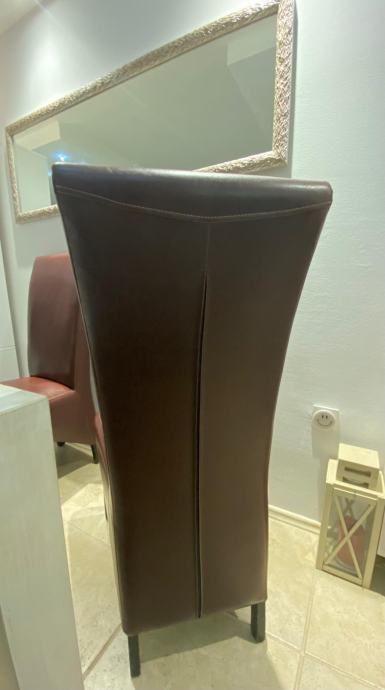 Stolice, 6 komada, drvo + umjetna koža i dvije barske sjedeće visine 75cm.