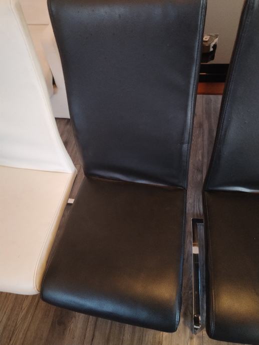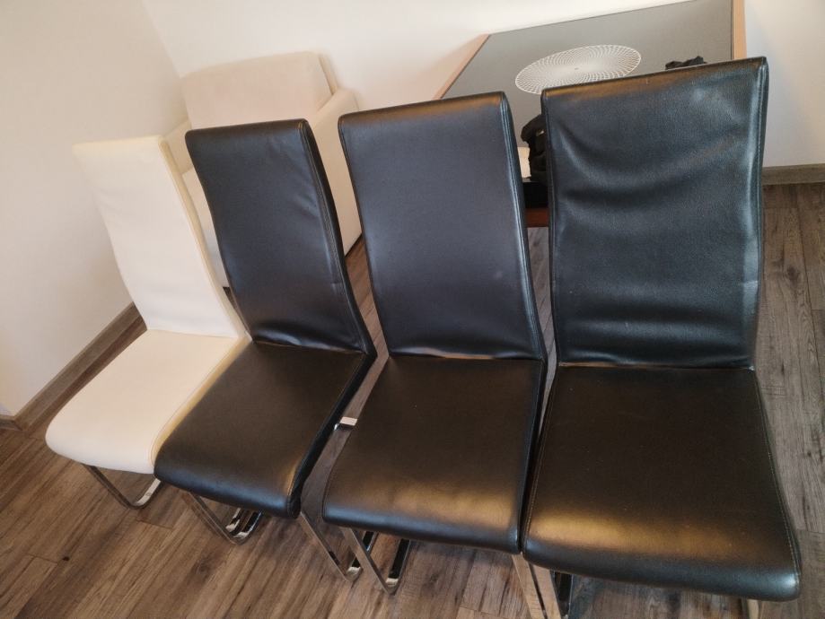 Prodajem kožne 3 crne i 1 bijela stolice imaju i platnenu navlaku imaju sitna oštećenja zanemariva, cvrste su i stabilne cijena nije fiksna 120eur sve 4