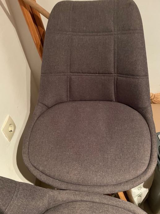 Prodajemo 4 stolice, polikarbonatna školjka, presvlaka štof, hrastove noge (isključivo u kompletu).