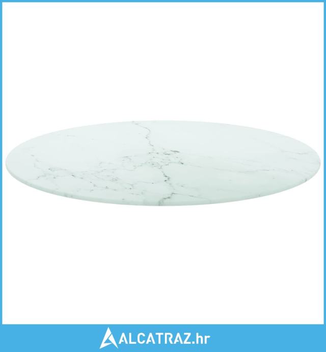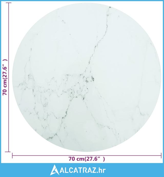Stolna ploča bijela Ø 70 x 0,8 cm staklena s mramornim uzorkom - NOVO