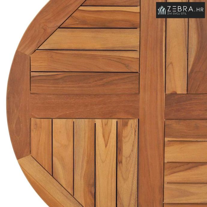 Izrađen od izuzetno izdržljive masivne tikovine, ovaj komad namještaja je obrađen, osušen i fino brušen kako bi imao gladak izgled. Tikovina je poznata po izuzetnoj čvrstoći i otpornosti na vremenske prilike što je čini daleko pogodnijom za vrtni namještaj od bilo koje druge vrste drveta. Tikovina je savršen izbor ako želite kupiti dugotrajni komad vrtnog namještaja.