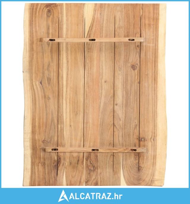 Ova kuhinjska stolna ploča napravljena je od masivnog bagremovog drva, tropskog tvrdog drva, koje je gusto, čvrsto i izdržljivo. Masivno bagremovo drvo polirano je, obojeno i lakirano kako bi se zatvorilo i zaštitilo od vlage. Kuhinjska stolna ploča izrađena je od debla stabla i ima živi rub, što čuva ljepotu drva.