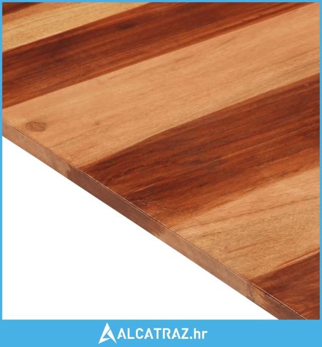 Naša stolna ploča napravljena je od masivnog drva bagrema. Masivno bagremovo drvo prekrasan je prirodan materijal. Drvo bagrema tropsko je tvrdo drvo, koje je gusto, čvrsto i izdržljivo. Stoga se također lako čisti vlažnom krpom. S jednostavnim i čistim izgledom, ova stolna ploča dodat će rustični šarm vašem blagovaonskom području. Uz to, možete kombinirati ovu površinu bilo s kojim stiliziranim nogama prema svojim specifičnim potrebama.