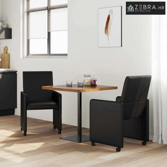 Umjetna koža: Stolice su obložene kvalitetnom umjetnom kožom koja izgleda odlično i lako se čisti. Ovaj materijal je otporan na mrlje i trošenje, što ih čini praktičnim izborom za zauzete kuhinje i blagovaonice svejedno zadržavajući moderan izgled. Bočni nasloni: Ovi bočni nasloni nude idealno mjesto za odmaranje ruku i savršeno se uklapaju u dizajn stolice. Omogućuju udobno sjedenje i podržavaju ergonomski način sjedenja tijekom dugih obroka ili druženja. Udobnost s pjenastim punjenjem: Mjesta su obložena pjenom koja pruža udobnost i dobru podršku. Pjena je lagana, ali efikasna, i osigurava ugodnu sjedeću poziciju kroz cijeli obrok. Mobilnost s kotačićima: Stolice dolaze s kotačićima, što znači da se lako pomiču po blagovaonici. Bilo da preručujete ili jednostavno želite malo pomaknuti stolicu, ovi kotačići olakšavaju kretanje. Laka montaža: Postavljanje ovih stolica je super jednostavno i zahtijeva samo odvijač. Uz jasne upute, brzo ćete uživati u svojim novim stolicama za blagovanje. Boja: Crna